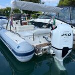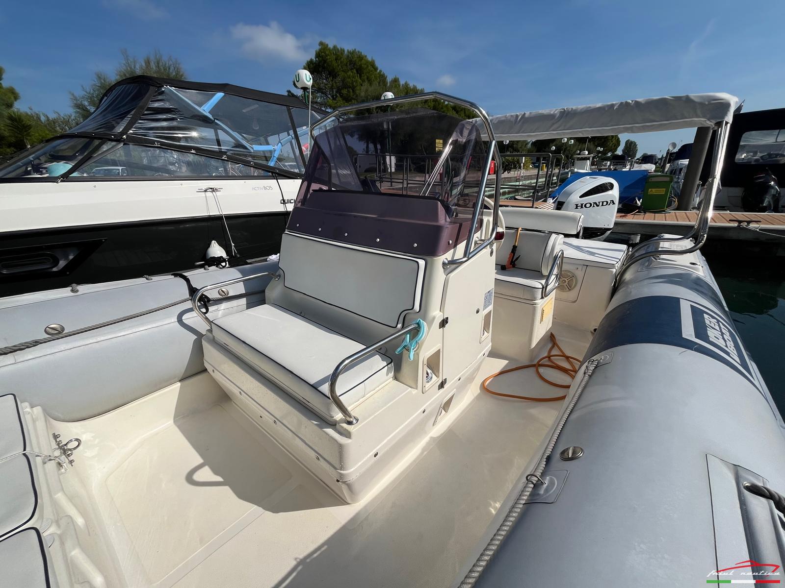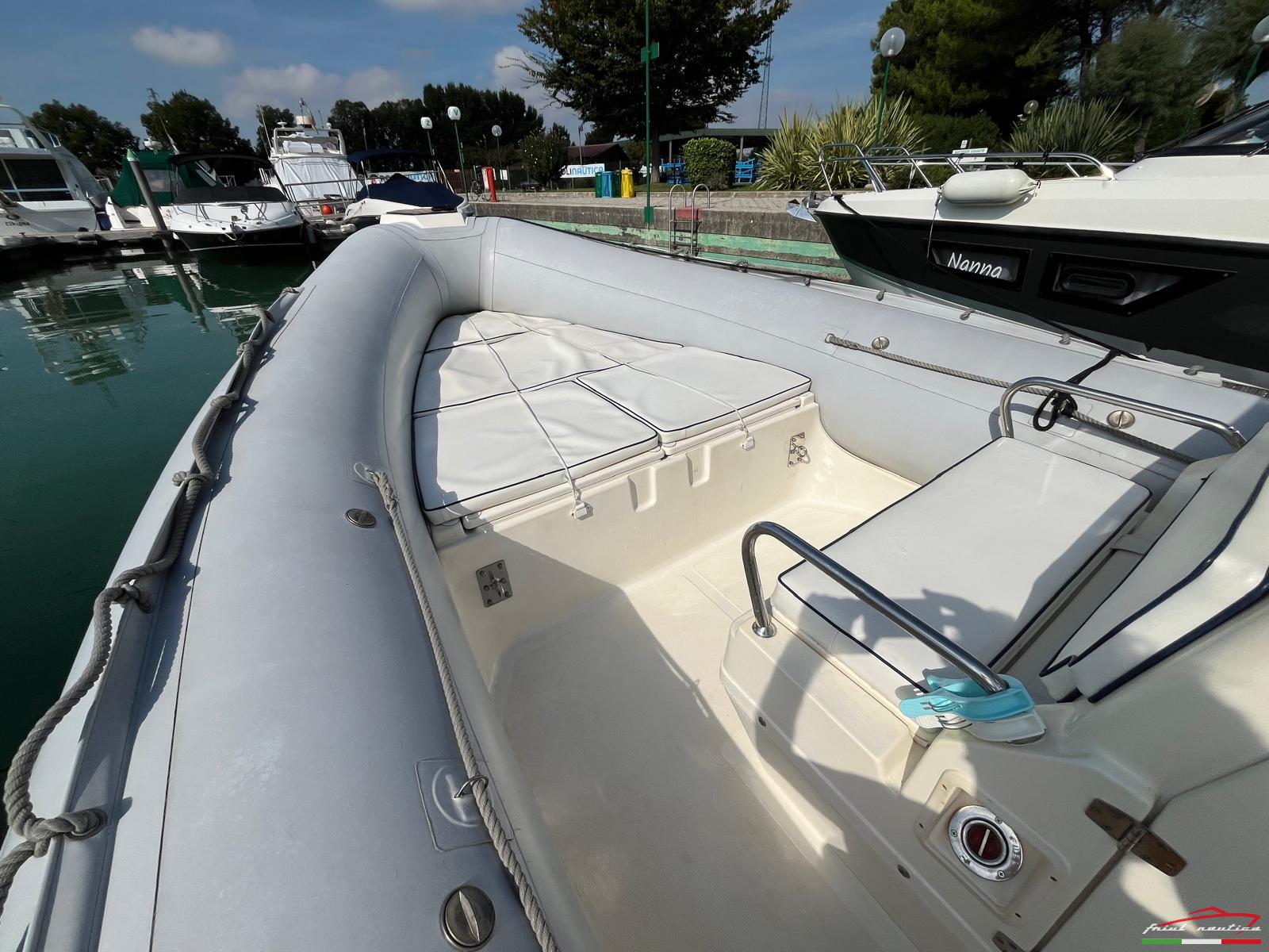 Gommone di grandi prestazioni, vivibilità pari al 26" per la presenza del bracket che incrementa la lunghezza interna. Carena progettata da Franco Donno. Vedere prova su You Tube di Maurizio Bulleri. Rimessato sempre al coperto. Tubolari e carena in perfette condizioni, no perdite.