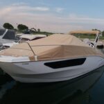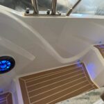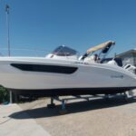 impianto Raymarine AXIOM 9 3DRV1, motore HONDA BF250D SPORTY WHITE anno 2021 ore di moto circa 380, radio fusion BT con 4 casse Fusion con luci LED blu, elica prua, lift Seastar Jack plate elettrico, Roll bar in acciaio, doppia tenda, Flaps elettrici, Rivestimento completo di teak sintetico esterno interno, Vericello elettrico con ancora inox e catena 30m con telecomando prua e console, Impianto WC elettrico, Bagno separato con doccia, Timoniera idraulica, 3 batterie con deviatore, Impianto 220 e 12V carica batteria + cavo banchina, 4 prese usb (cabina e console), 1 presa 220V, 1 presa 12V, Telo completo chiusura, Telo chiusura copertura camper, Luci cortesia pozzetto e prua blu, Luci subacquee blu, Doccia esterna, Tavolo esterno e interno, Plancette, Scaletta a mare telescopia e scomparsa . Barca carellabile.