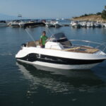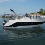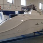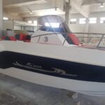 Dotazioni standard: volante con timoneria monocavo, pulpito acciaio, parabrezza in plexiglass, 4 bitte, 3 ganci alaggio, luci navigazione, cuscineria interna ed esterna, pompa sentina, pannello interruttori, passo uomo, porta ingresso cabina, scaletta bagno, kit lavabo con rubinetto, autoclave con doccia, serbatoio acqua 50 lt