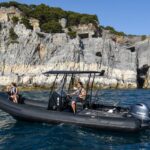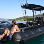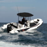 Bimini acciaio diametro 40 a 6 pali completo di luci per la navigazione, Bussola, Consolle di guida, Cuscineria completa, Doccia completa di serbatoio acqua 60 lt , Ganci porta parabordi, Luci di cortesia, Plancette di poppa con scala inox telescopica, Portacanne, Presa mare, Seduta lombare con vasca del vivo integrata, Serbatoio benzina 198 lt con blower, Tromba, Volante